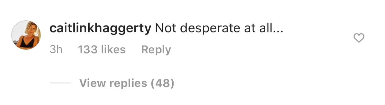 Oof, I am cringing so hard right now. Aside from whatever personal drama is going on with these people right now, I personally don’t think it’s that desperate for Demi to post this photo. Like, there are millions of Instagram thots out there posting bikini pics regardless of their relationship, and Caitlin’s comment really just comes across as slut-shamey. In this situation, she’s obviously trying to be catty, but to comment this in such a public place isn’t a great look.