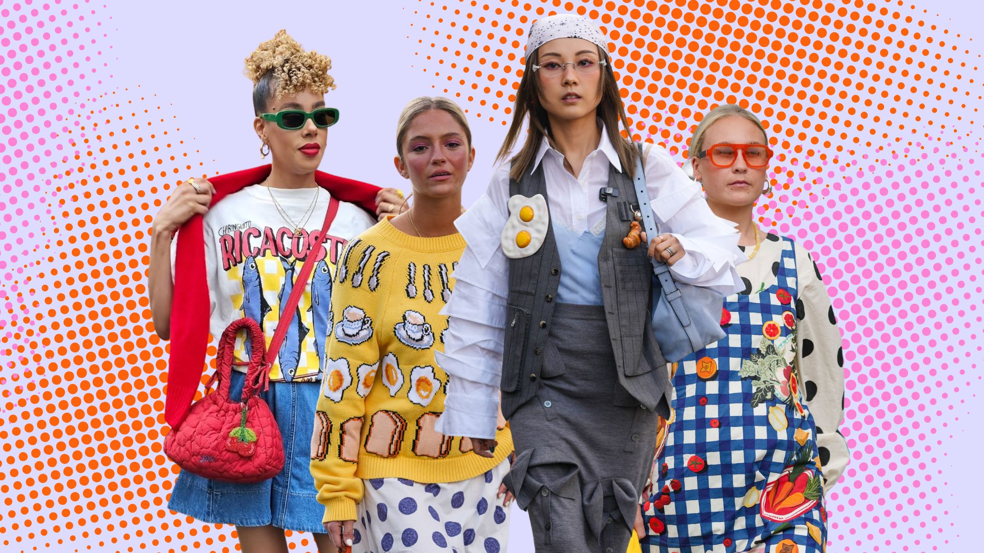 Is there any feeling worse than scanning your closet, only to conclude you might as well own a bunch of invisible emperor’s clothes because NOTHING is hitting? As an elder millennial who has lived through many questionable fashion eras (I lowkey regret nothing about wearing business casual to the clerb, but that’s neither here nor there), the pieces that I’ve cherished keeping over the years are the Carrie Bradshaw-coded stunners that border on “too much.” Enter: summer’s latest, lunchiest trend — food-focused fashion.