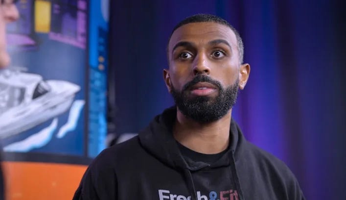 The same goes for Myron Gaines, a Miami-based podcaster known for his exceptionally toxic Fresh & Fit podcast. My honest first thoughts of Myron? He’s nervous and quiet, a little nerdy, the kind of hyperactive kid who probably spent his prom night arguing with strangers in chat rooms about which Dragon Ball Z character was the most lethal.