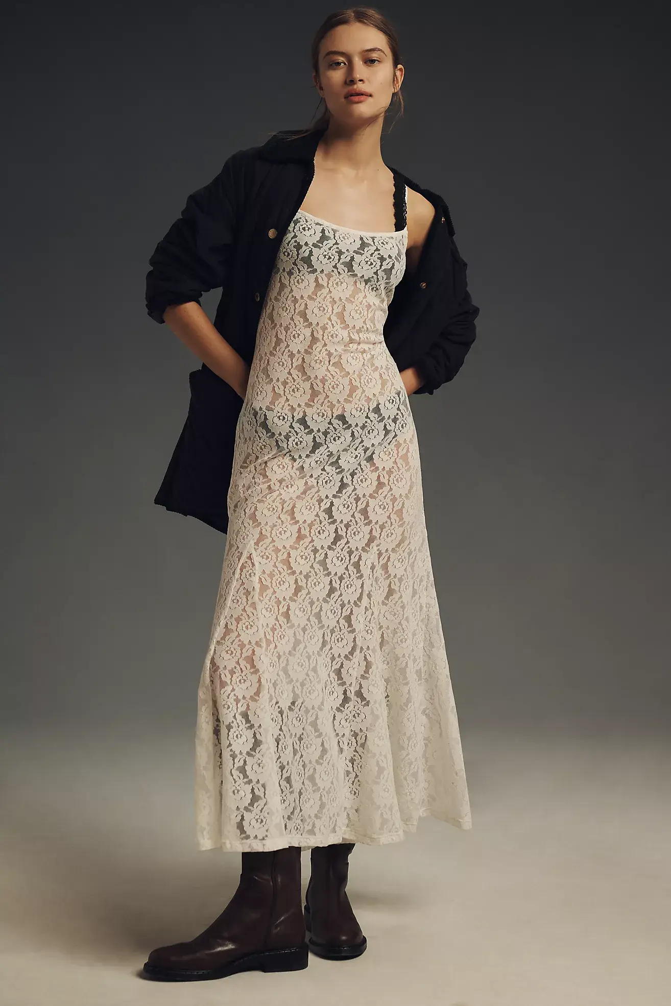 It’s giving French countryside virginal ghost, but, like, hot, and like you still need to be able to chase your phone across the bed at 2 a.m.? Pair it with a leather jacket and some boots for the perfect date-night look.