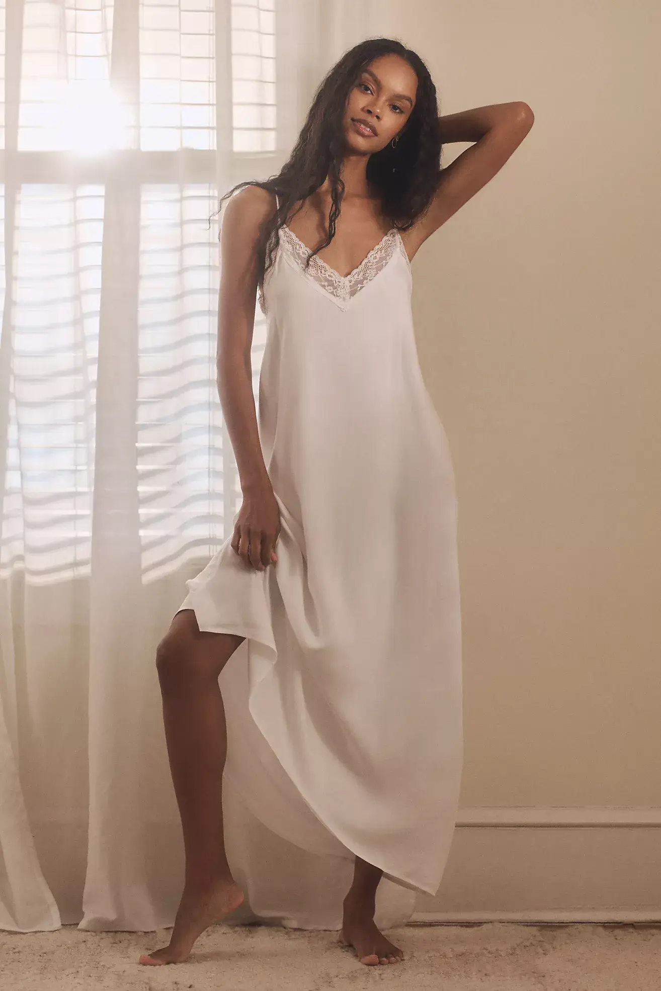 This is the kind of nightie that makes you feel expensive even if your dinner was just reheated pasta and a lukewarm glass of wine.