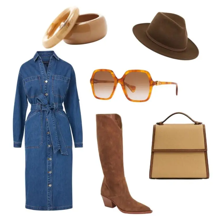 Is there anything cuter than a western-inspired bootie? I love these Raj boots paired with a fully denim midi dress and some oversized sunglasses. And instead of a cowboy hat, grab a felt fedora instead. It will keep the autumn sun out of your eyes!