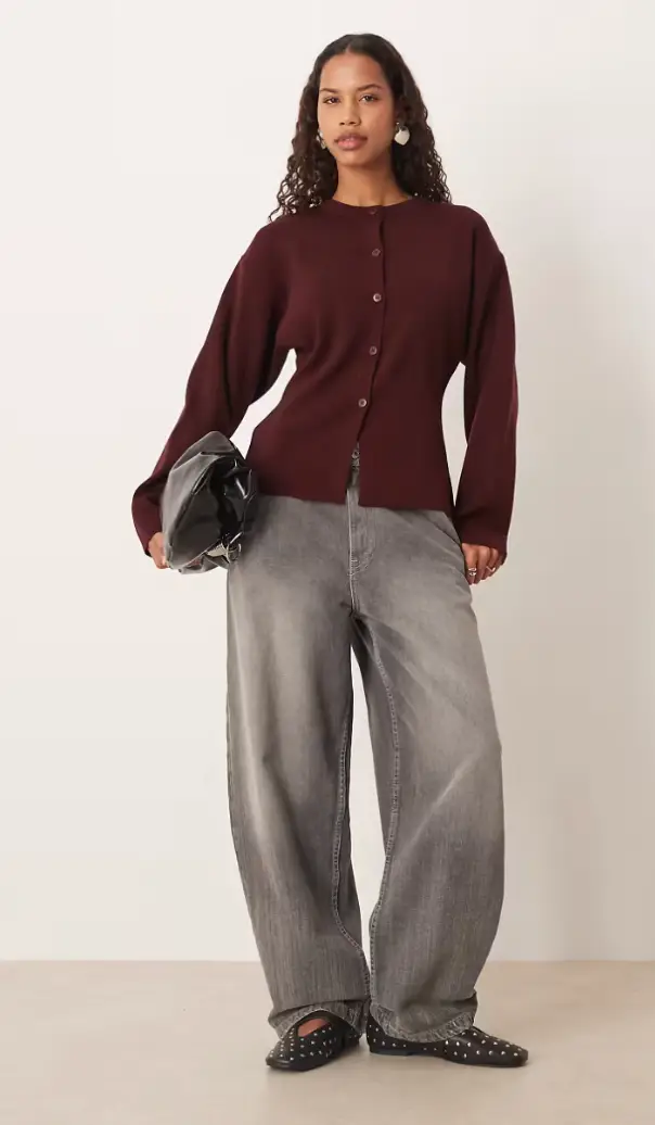 If you are going to go with a crew neck look, there are ways to elevate it — and this button-down knit one from ASOS will help you do just that. Whether you want to pair this with baggy jeans or a nice trouser, this plum top screams sophisticated and comfy.