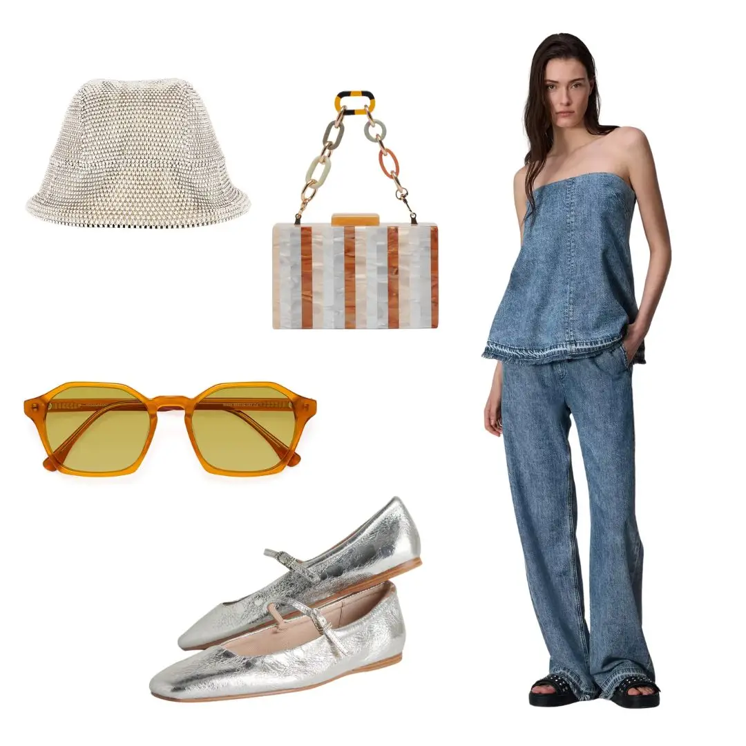 If you’re not quite into the all-pink-everything look, there are still ways to incorporate this shimmering trend into your wardrobe. I love the idea of pairing an all-denim ensemble with pops of silver, like the Dolce Vita Reyes Ballet Flats and a sparkling bucket hat. So as to not look like a total disco ball, mix in some earthy tones — like the frames of these retro sunglasses and the stripes in DV’s Corrie Clutch (which, bonus, also comes with two interchangeable straps).
