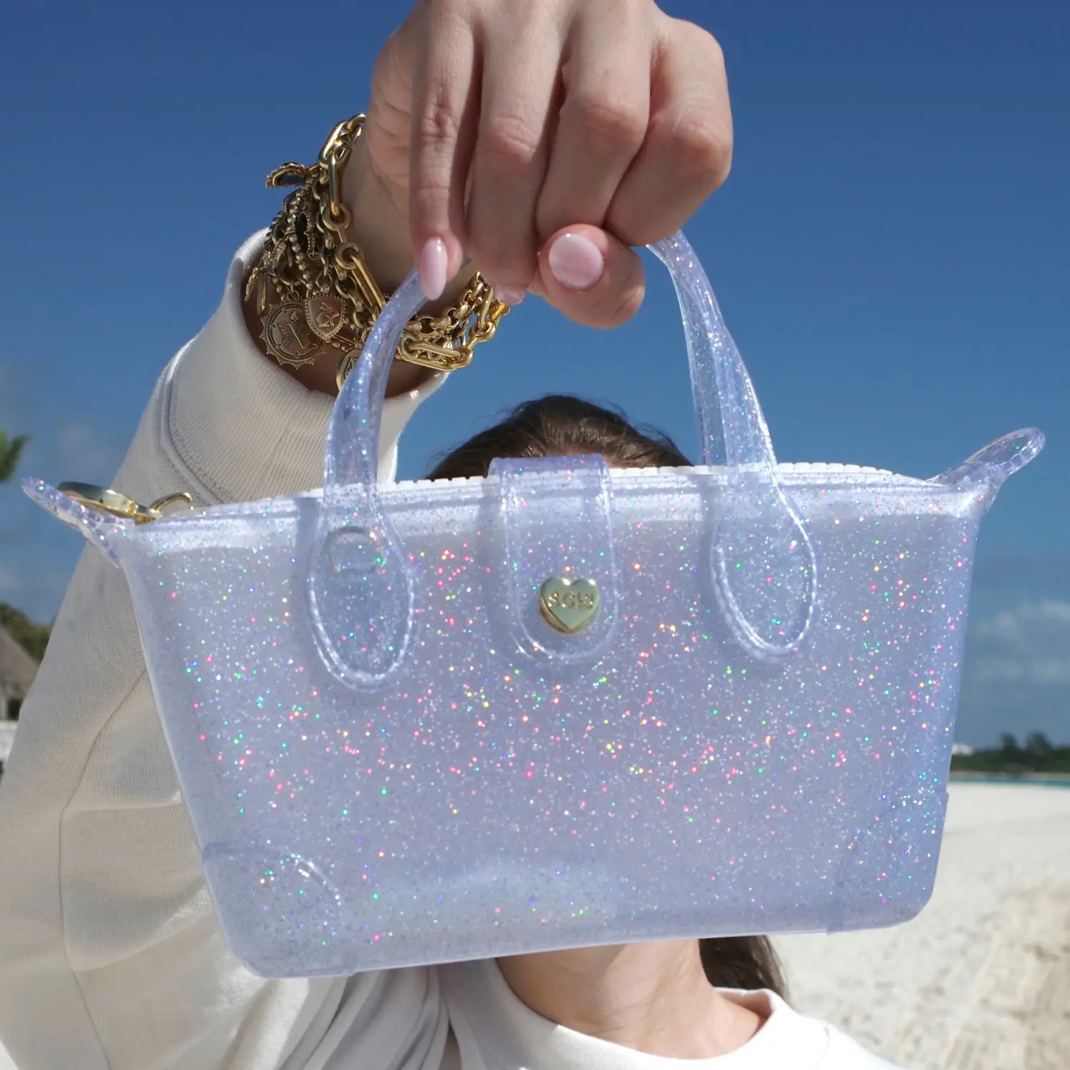 Why not match your jelly sandals with this adorable jelly crossbody bag? It’s giving Polly Pocket in the best way.