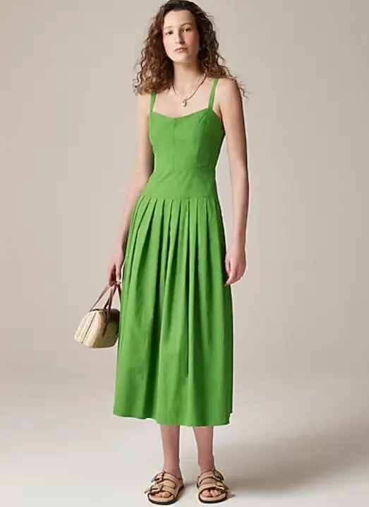J. Crew Pleated drop-waist dress in crinkle cotton blend
