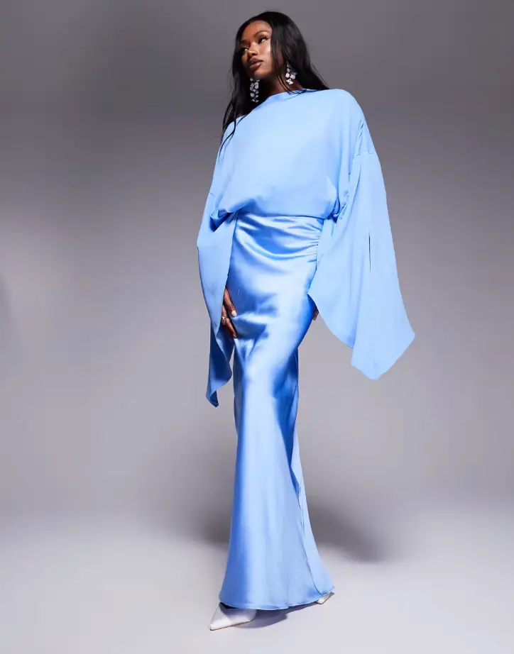 ASOS DESIGN chiffon overlay satin bias maxi dress in cornflower blue