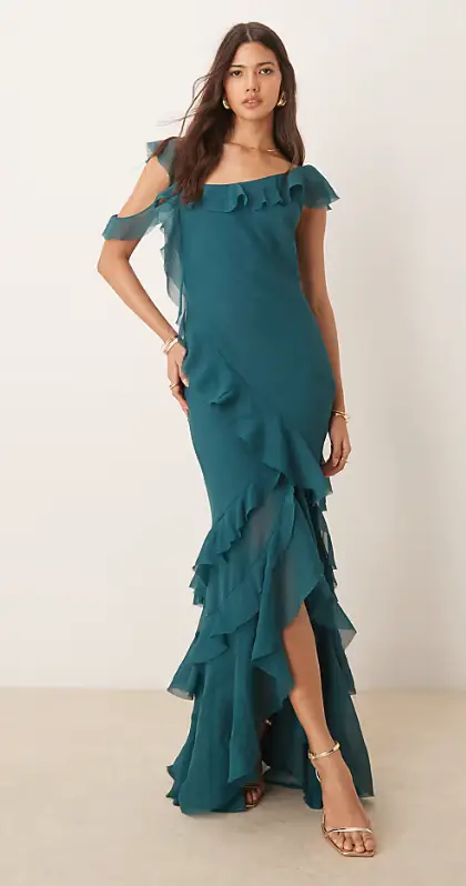 Asos Design Asymmetric Shoulder Bias Cut Maxi Dress