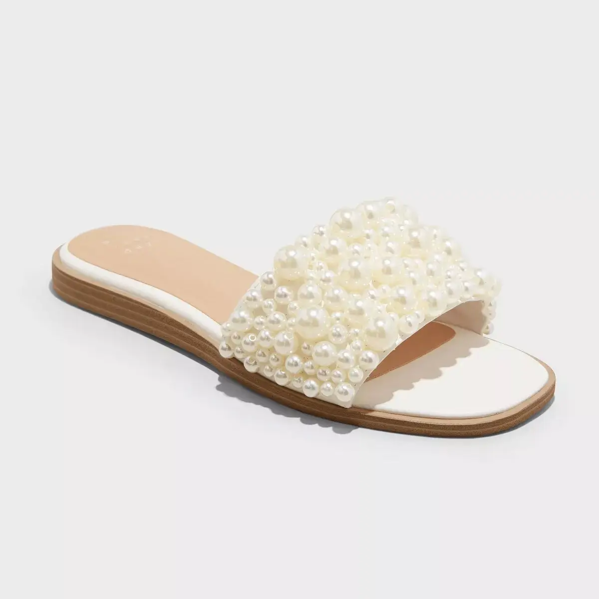 Jasmine Pearl Slide Sandals with Memory Foam Insole