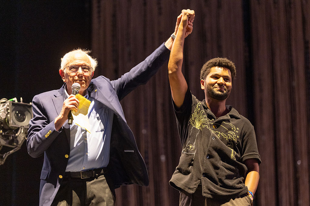 After thanking indie singer-songwriter/fairy angel who helps me romanticize my life, Clairo, Bernie started his speech by introducing Maxwell Frost. As Bernie said, Maxwell “is a member of the United States Congress, the youngest member and, in [his] view, one of the best members.” He wanted to introduce Maxwell to those who “may or may not know him” because Maxwell is fighting for democracy in Florida, and local politics is pretty much our only chance for any semblance of justice rn.